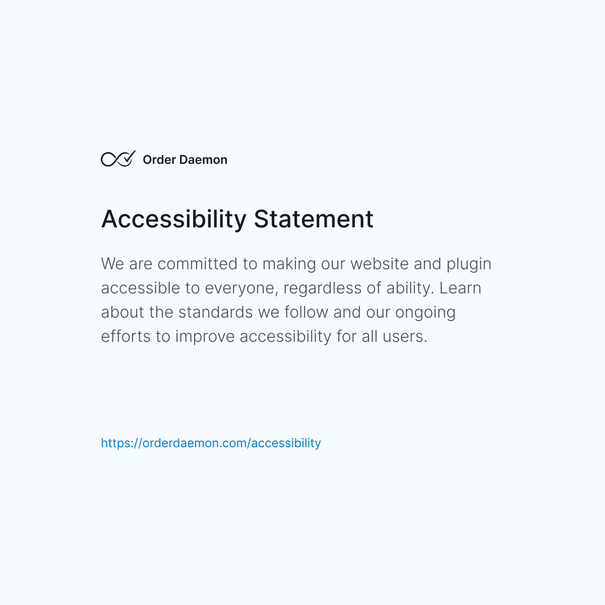 Order Daemon is committed to ensuring digital accessibility for people with disabilities. We are continually improving the user experience for everyone and applying the relevant accessibility standards.